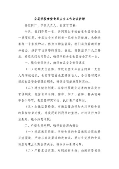 / 【七哥公文】2024年:全县学校食堂食品安全工作会议讲话+更多免费公文+VX:QiGeGongWen2024