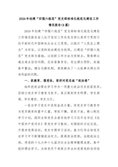 【七哥公文】2024年:(4篇)2024年创建“四强六规范”党支部标准化规范化建设工作情况报告+更多免费公文+VX:QiGeGongWen2024