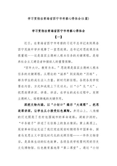 / 【七哥公文】2024年:(6篇)学习贯彻在青海省西宁市考察心得体会+更多免费公文+VX:QiGeGongWen2024