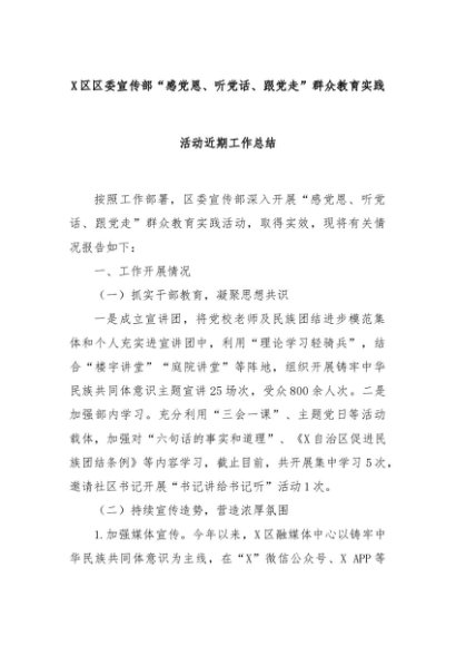 【七哥公文】2024年:X区区委宣传部“感党恩、听党话、跟党走”群众教育实践活动近期工作总结+更多免费公文+VX:QiGeGongWen2024