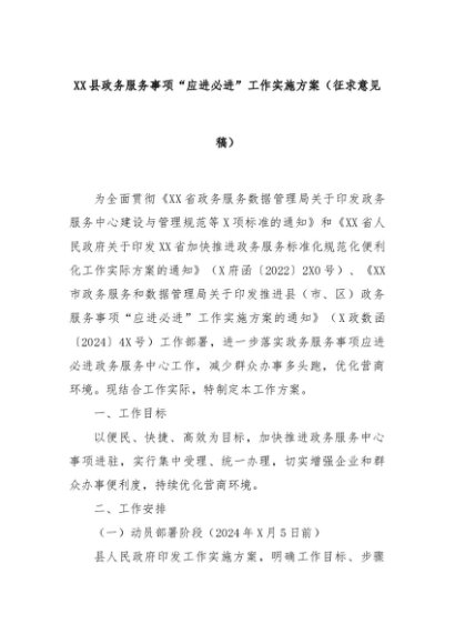 【七哥公文】2024年:XX县政务服务事项“应进必进”工作实施方案(征求意见稿)+更多免费公文+VX:QiGeGongWen2024