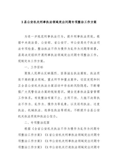 【七哥公文】2024年:X县公an机关刑事执法领域突出问题专项整治工作方案+更多免费公文+VX:QiGeGongWen2024