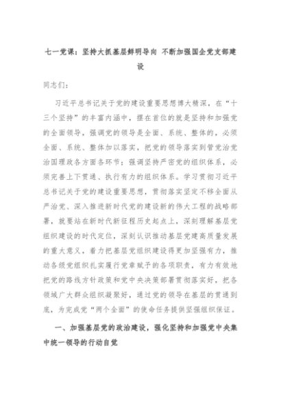 【七哥公文】2024年:七一党课:坚持大抓基层鲜明导向 不断加强国企党支部建设+更多免费公文+VX:QiGeGongWen2024