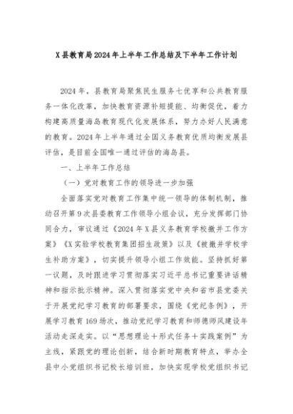 【七哥公文】2024年:X县教育局2024年上半年工作总结及下半年工作计划+更多免费公文+VX:QiGeGongWen2024