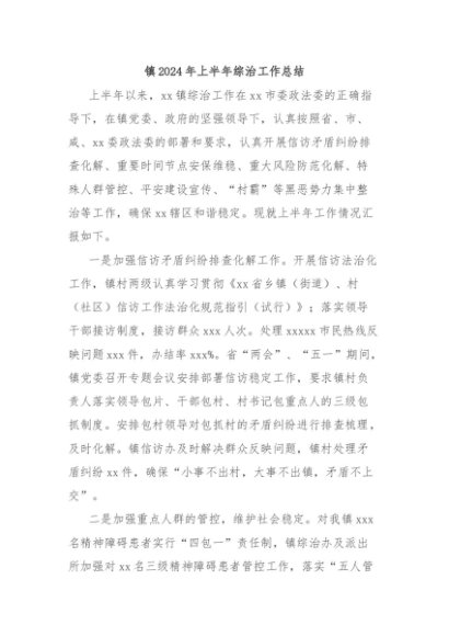 / 【七哥公文】2024年:镇2024年上半年综治工作总结+更多免费公文+VX:QiGeGongWen2024