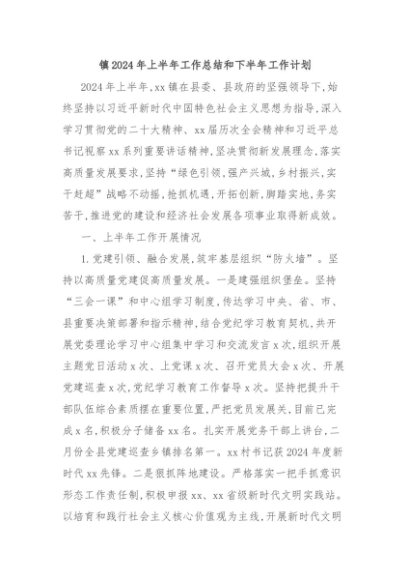 【七哥公文】2024年:镇2024年上半年工作总结和下半年工作计划+更多免费公文+VX:QiGeGongWen2024