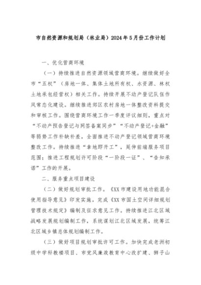 【七哥公文】2024年:市自然资源和规划局(林业局)2024年5月份工作计划+更多免费公文+VX:QiGeGongWen2024