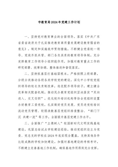 / 【七哥公文】2024年:市教育局2024年党建工作计划+更多免费公文+VX:QiGeGongWen2024