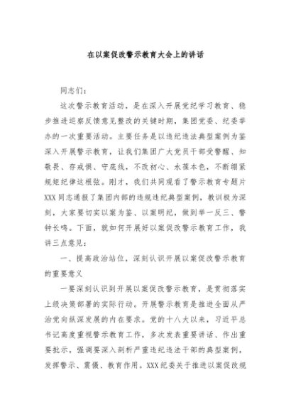 / 【七哥公文】2024年:在以案促改警示教育大会上的讲话+更多免费公文+VX:QiGeGongWen2024