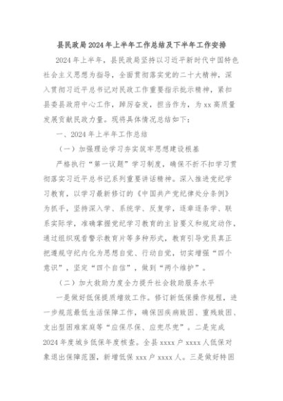 / 【七哥公文】2024年:县民政局2024年上半年工作总结及下半年工作安排+更多免费公文+VX:QiGeGongWen2024