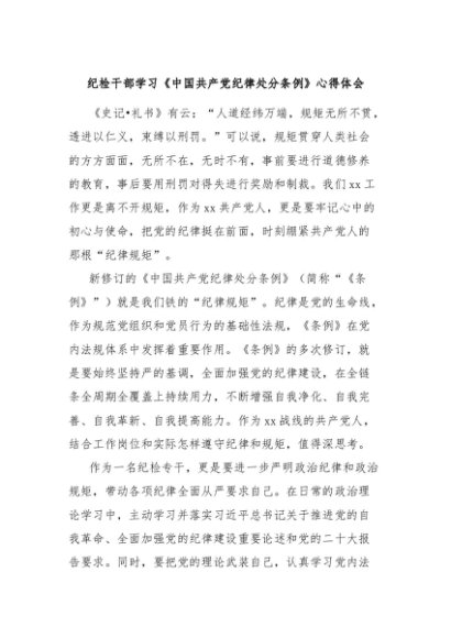 【七哥公文】2024年:纪检干部学习《中国共产党纪律处分条例》心得体会+更多免费公文+VX:QiGeGongWen2024