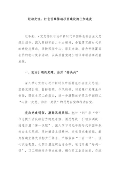 【七哥公文】2024年:经验交流:红色引擎推动项目建设跑出加速度+更多免费公文+VX:QiGeGongWen2024