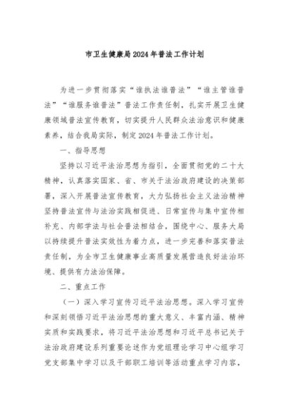 / 【七哥公文】2024年:市卫生健康局2024年普法工作计划+更多免费公文+VX:QiGeGongWen2024