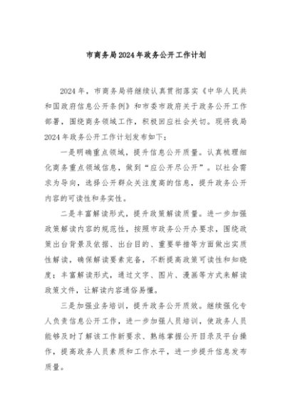 / 【七哥公文】2024年:市商务局2024年政务公开工作计划+更多免费公文+VX:QiGeGongWen2024