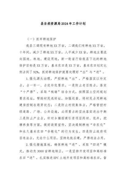 / 【七哥公文】2024年:县自然资源局2024年工作计划+更多免费公文+VX:QiGeGongWen2024