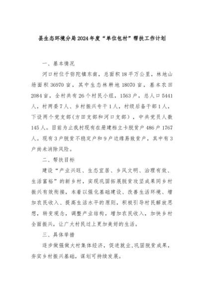 【七哥公文】2024年:县生态环境分局2024年度“单位包村”帮扶工作计划+更多免费公文+VX:QiGeGongWen2024