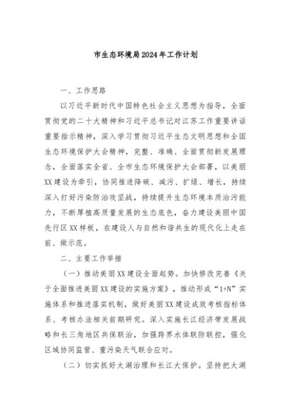 / 【七哥公文】2024年:市生态环境局2024年工作计划+更多免费公文+VX:QiGeGongWen2024