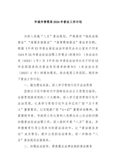 / 【七哥公文】2024年:市城市管理局2024年普法工作计划+更多免费公文+VX:QiGeGongWen2024