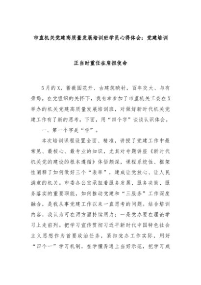 【七哥公文】2024年:市直机关党建高质量发展培训班学员心得体会:党建培训正当时重任在肩担使命+更多免费公文+VX:QiGeGongWen2024