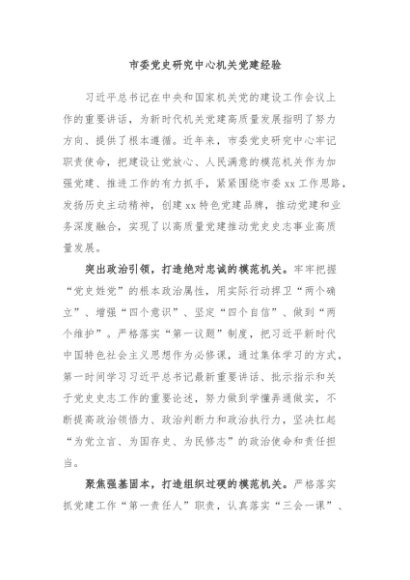/ 【七哥公文】2024年:市委党史研究中心机关党建经验+更多免费公文+VX:QiGeGongWen2024