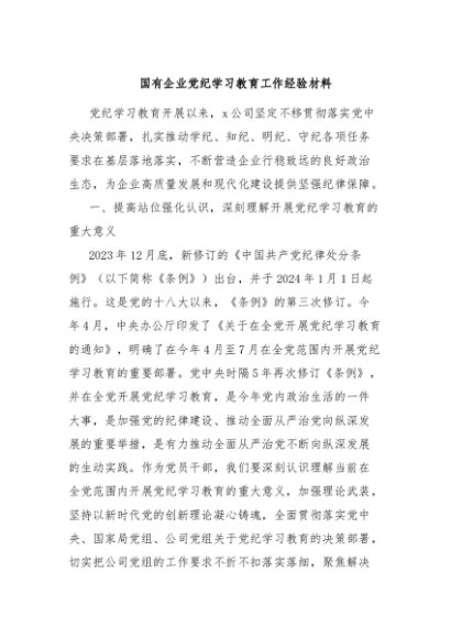 / 【七哥公文】2024年:国有企业党纪学习教育工作经验材料+更多免费公文+VX:QiGeGongWen2024