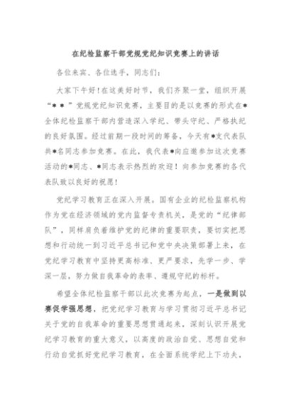 / 【七哥公文】2024年:在纪检监察干部党规党纪知识竞赛上的讲话+更多免费公文+VX:QiGeGongWen2024