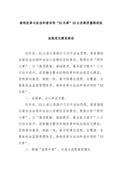 【七哥公文】2024年:奏响改革与法治和谐共鸣“XX乐章”XX公安高质量推进执法规范化建设综述+更多免费公文+VX:QiGeGongWen2024