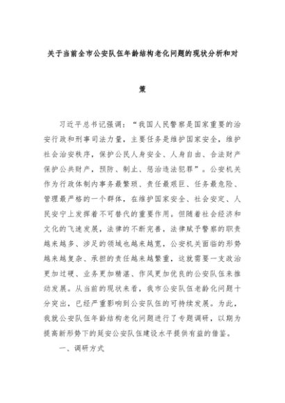 【七哥公文】2024年:关于当前全市公安队伍年龄结构老化问题的现状分析和对策+更多免费公文+VX:QiGeGongWen2024