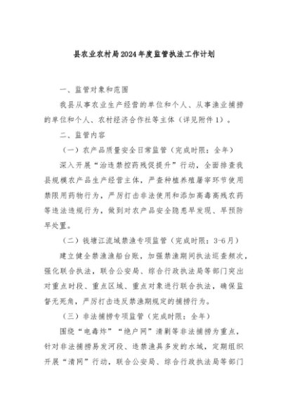 / 【七哥公文】2024年:县农业农村局2024年度监管执法工作计划+更多免费公文+VX:QiGeGongWen2024