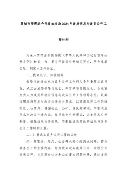 【七哥公文】2024年:县城市管理综合行政执法局2024年政府信息与政务公开工作计划+更多免费公文+VX:QiGeGongWen2024
