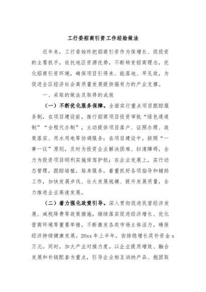 / 【七哥公文】2024年:工行委招商引资工作经验做法+更多免费公文+VX:QiGeGongWen2024