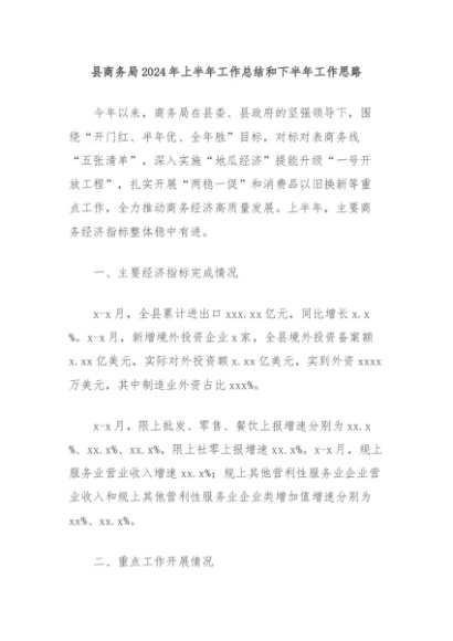 / 【七哥公文】2024年:县商务局2024年上半年工作总结和下半年工作思路+更多免费公文+VX:QiGeGongWen2024