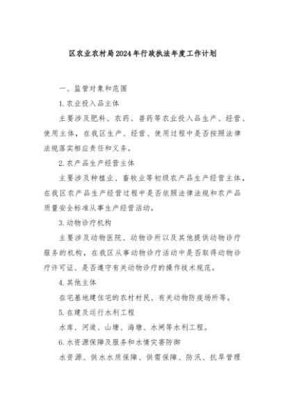 / 【七哥公文】2024年:区农业农村局2024年行政执法年度工作计划+更多免费公文+VX:QiGeGongWen2024