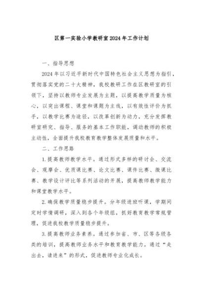 / 【七哥公文】2024年:区第一实验小学教研室2024年工作计划+更多免费公文+VX:QiGeGongWen2024