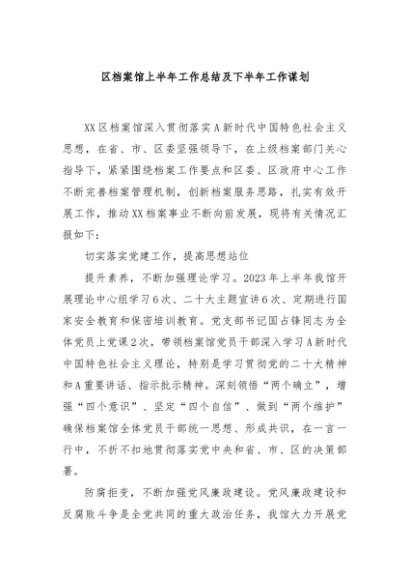 / 【七哥公文】2024年:区档案馆上半年工作总结及下半年工作谋划+更多免费公文+VX:QiGeGongWen2024