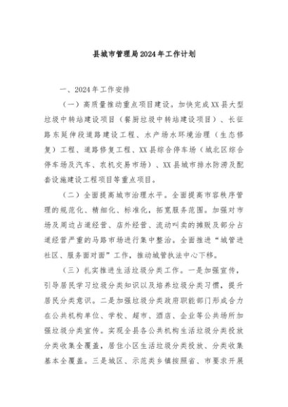 / 【七哥公文】2024年:县城市管理局2024年工作计划+更多免费公文+VX:QiGeGongWen2024
