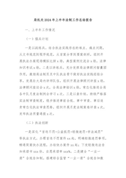 / 【七哥公文】2024年:局机关2024年上半年法制工作总结报告+更多免费公文+VX:QiGeGongWen2024