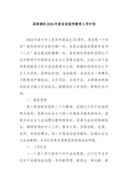 / 【七哥公文】2024年:县供销社2024年度法治宣传教育工作计划+更多免费公文+VX:QiGeGongWen2024