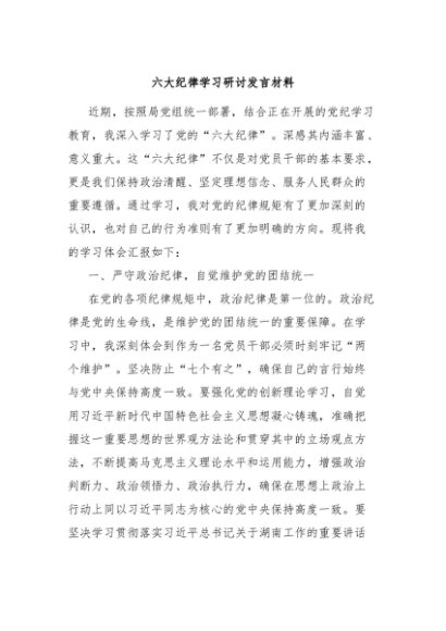 / 【七哥公文】2024年:六大纪律学习研讨发言材料+更多免费公文+VX:QiGeGongWen2024