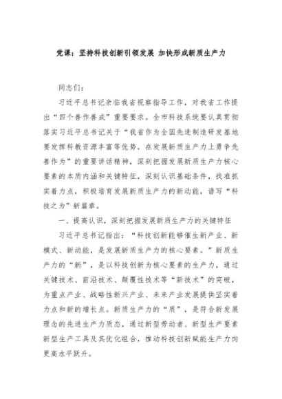 / 【七哥公文】2024年:党课:坚持科技创新引领发展 加快形成新质生产力+更多免费公文+VX:QiGeGongWen2024