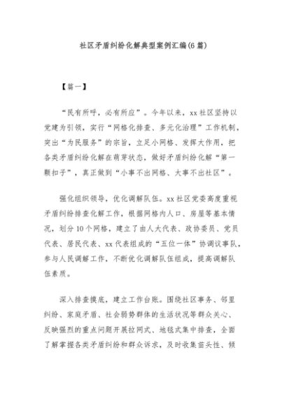 / 【七哥公文】2024年:(6篇)社区矛盾纠纷化解典型案例汇编+更多免费公文+VX:QiGeGongWen2024