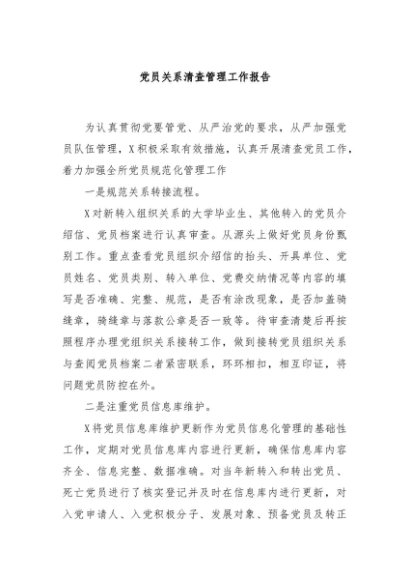 / 【七哥公文】2024年:党员关系清查管理工作报告+更多免费公文+VX:QiGeGongWen2024