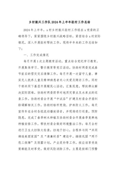 / 【七哥公文】2024年:乡村振兴工作队2024年上半年驻村工作总结+更多免费公文+VX:QiGeGongWen2024