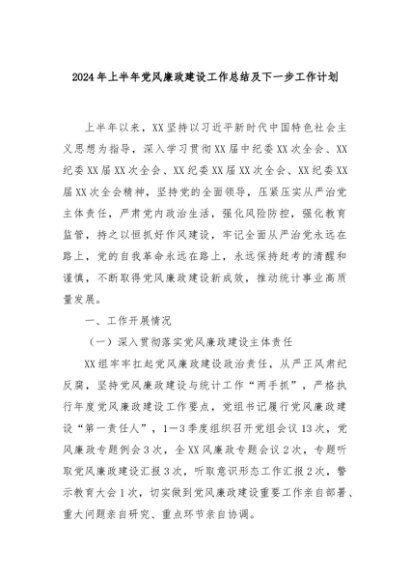 【七哥公文】2024年:2024年上半年党风廉政建设工作总结及下一步工作计划+更多免费公文+VX:QiGeGongWen2024