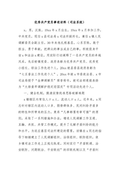 / 【七哥公文】2024年:优秀共产党员事迹材料(司法系统)+更多免费公文+VX:QiGeGongWen2024