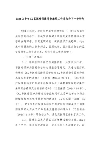 【七哥公文】2024年:2024上半年XX县医疗保障局价采股工作总结和下一步计划+更多免费公文+VX:QiGeGongWen2024