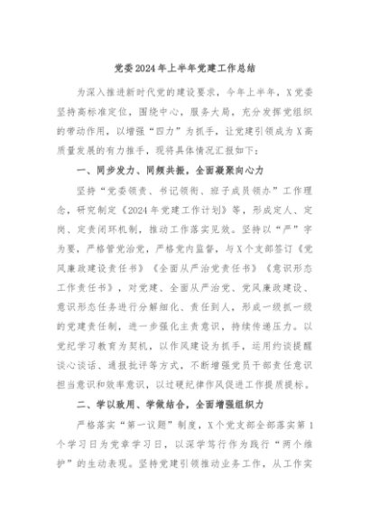/ 【七哥公文】2024年:党委2024年上半年党建工作总结+更多免费公文+VX:QiGeGongWen2024