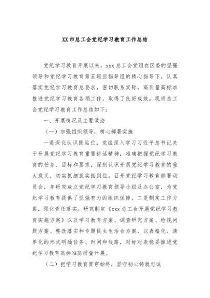 / 【七哥公文】2024年:XX市总工会党纪学习教育工作总结+更多免费公文+VX:QiGeGongWen2024