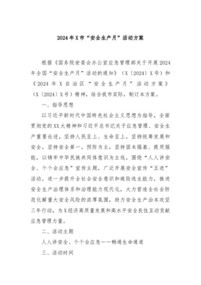 / 【七哥公文】2024年:2024年X市“安全生产月”活动方案+更多免费公文+VX:QiGeGongWen2024