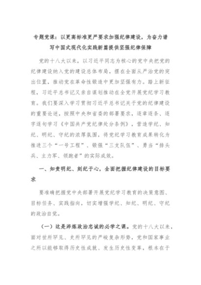 【七哥公文】2024年:专题党课:以更高标准更严要求加强纪律建设,为奋力谱写中国式现代化实践新篇提供坚强纪律保障+更多免费公文+VX:QiGeGongWen2024